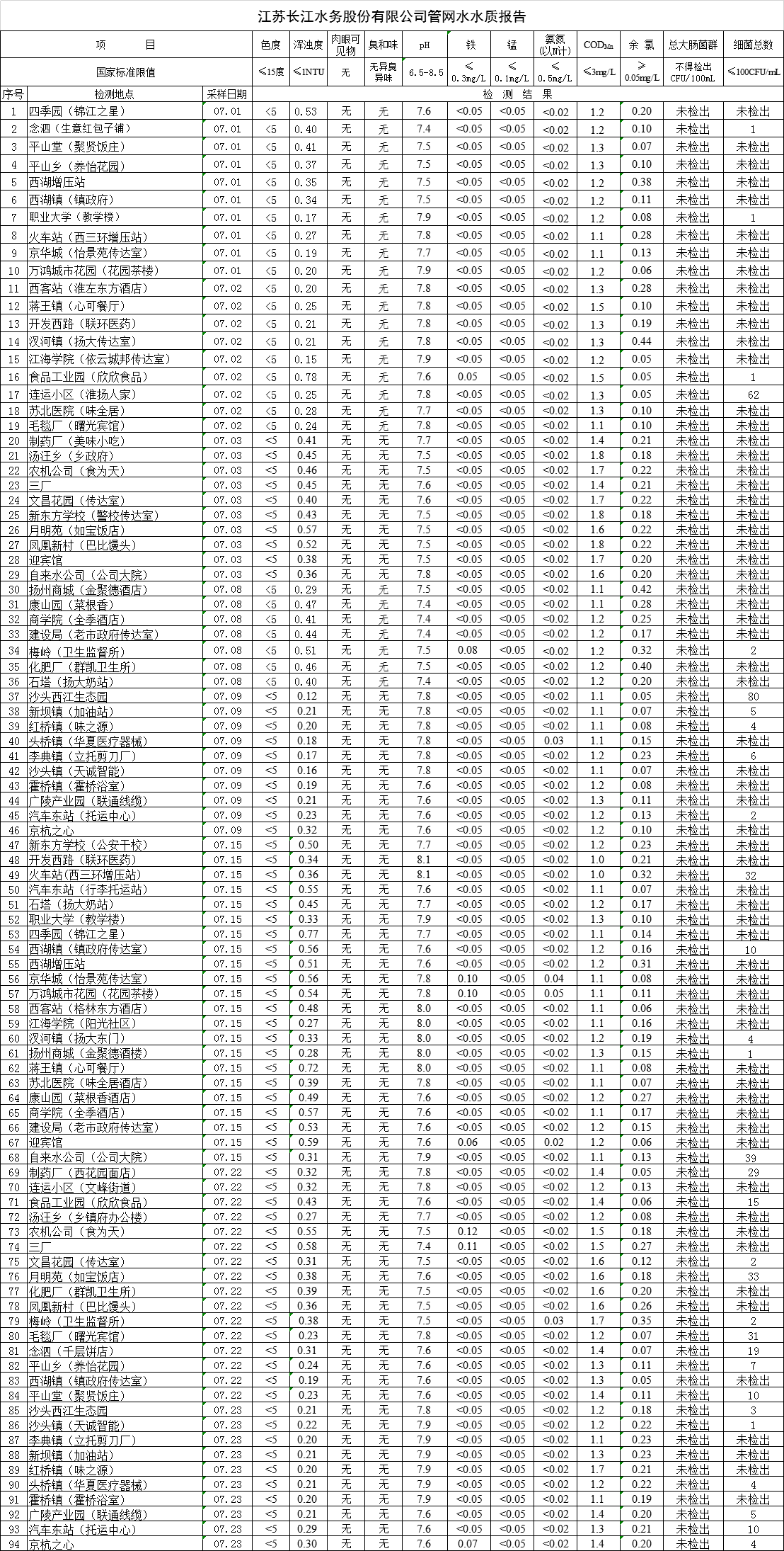 江蘇長江水務(wù)股份有限公司管網(wǎng)水水質(zhì)報告(2019年7月)