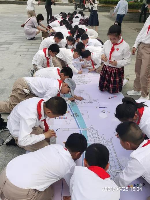 在雄壯的國(guó)歌中,活動(dòng)徐徐拉開(kāi)帷幕。揚(yáng)州軍分區(qū)護(hù)旗隊(duì),高舉國(guó)旗正步入場(chǎng),并將國(guó)旗傳遞給少先隊(duì)員代表。隨后廣場(chǎng)響起清亮的少年先鋒隊(duì)隊(duì)歌:“我們是共產(chǎn)主義接班人,繼承革命先烈的光榮傳統(tǒng)......”,錚錚歌詞、響徹全場(chǎng),回憶青春、心潮澎湃。最后,資產(chǎn)公司、廣陵消防救援站、團(tuán)工委、東關(guān)街道婦聯(lián)等單位代表共同在噴繪上進(jìn)行沙畫作業(yè),表達(dá)心中對(duì)建黨百年的衷心祝愿,少先隊(duì)員們也用手中彩筆描繪東關(guān)錦繡風(fēng)光。