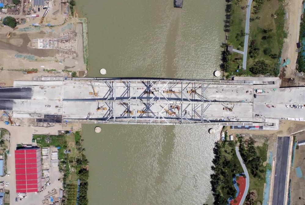 跨京杭運(yùn)河大橋是萬福快速路工程重難點(diǎn)及控制性節(jié)點(diǎn)工程,施工難度大、精度要求高,決定著整個(gè)工程關(guān)門工期。施工過程中涉及的鋼棧橋施工、深基坑施工及上部結(jié)構(gòu)吊裝均為超過一定規(guī)模的危險(xiǎn)性較大的分部分項(xiàng)工程,施工安全風(fēng)險(xiǎn)高。為確保按期完成,錢俊多次組織召開專題推進(jìn)會(huì),倒排工期,掛圖作戰(zhàn),制定詳細(xì)的施工計(jì)劃,出現(xiàn)偏差及時(shí)分析并修正調(diào)整;同時(shí),加強(qiáng)與海事、航道、船閘等部門的對接協(xié)調(diào),確保鋼構(gòu)件及時(shí)進(jìn)場、及時(shí)封航吊裝。施工期間,每天安排專人對施工部位進(jìn)行巡查,檢查措施落實(shí)情況,針對發(fā)現(xiàn)的問題及時(shí)組織各方商討最佳解決方案,優(yōu)化施工工藝。在全體參建人員的共同努力下,2021年1月27日,跨京杭運(yùn)河大橋拱肋全部合龍;2021年4月16日,跨京杭運(yùn)河大橋橋面板合攏......目前,萬??焖俾饭こ陶凑占榷ㄓ?jì)劃順利推進(jìn),工程形象進(jìn)度完成率近90%。
