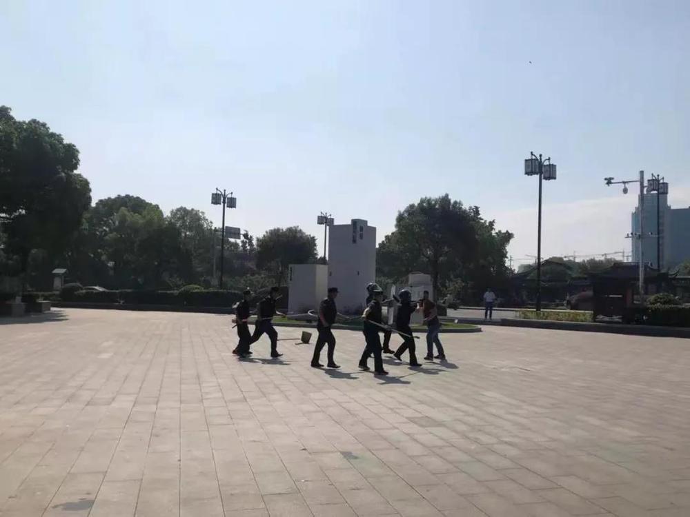 演練現(xiàn)場(chǎng),烈日當(dāng)空,街區(qū)廣場(chǎng)出現(xiàn)了一名手持砍刀的“暴徒”,接到警情后,街區(qū)立即啟動(dòng)防暴應(yīng)急預(yù)案,現(xiàn)場(chǎng)總指揮一聲令下,數(shù)名保安攜帶鋼叉、盾牌、警棍等裝備迅速趕到事發(fā)現(xiàn)場(chǎng),經(jīng)過(guò)一番搏斗,成功將“暴徒”制服,保障了顧客人身安全。