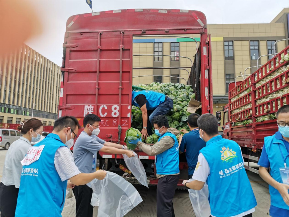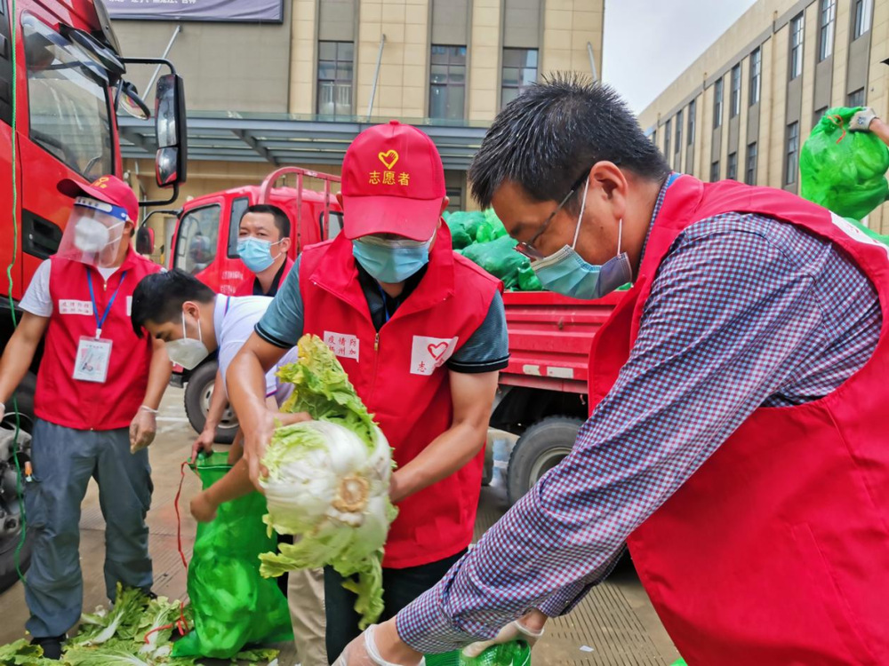 由于蔬菜數(shù)量龐大,為保障居民能夠及時(shí)拿到“愛心菜”,13:30,城控集團(tuán)又從各志愿服務(wù)小組緊急抽調(diào)50名志愿者奔赴萬噸冷鏈進(jìn)行現(xiàn)場支援。