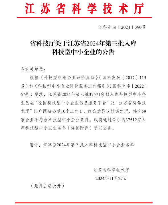 近日,江蘇省科學技術(shù)廳公布了江蘇省2024年第三批入庫科技型中小企業(yè)名單,管網(wǎng)公司下屬子公司運維公司榮獲江蘇省2024年“科技型中小企業(yè)”稱號?!翱萍夹椭行∑髽I(yè)”由江蘇省科技廳授予資質(zhì)并備案,是企業(yè)創(chuàng)新能力“認證”的重要標志。
