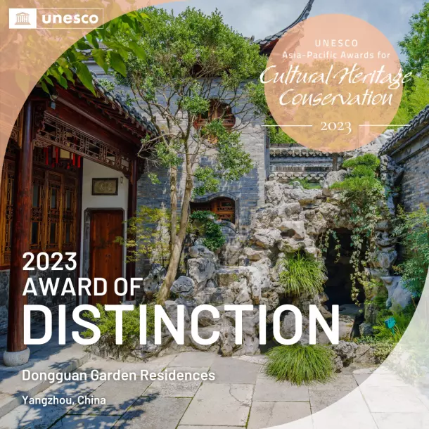東關歷史文化街區(qū)位于揚州明清古城東北隅,東起古運河,西至國慶路,南臨文昌中路,北達鹽阜東路,面積3.4平方公里,是城內迄今保存最為完整、規(guī)模最大的歷史文化街區(qū)。街區(qū)沿線歷史遺存薈萃,其中個園、汪氏小苑、唐宋東門遺址、逸圃為國家級文物保護單位,曹起溍故居、壺園、劉文淇故居、丁姓鹽商住宅等為市級文物保護單位。2023年末,聯(lián)合國官網(wǎng)發(fā)布了《2023年亞太文化遺產保護獎獲獎者名單》?!皷|關歷史文化街區(qū)園宅保護與傳承復興項目”從亞太地區(qū)8個國家48個參賽項目中脫穎而出,獲評聯(lián)合國教科文組“2023年度亞太文化遺產保護獎杰出獎”。是全國唯一獲得“杰出獎”的文保項目。聯(lián)合國教科文組織在項目評審語中寫到“東關歷史文化街區(qū)是傳統(tǒng)文化與當代景觀設計的完美結合,為亞太地區(qū)古典園林保護及活化利用提供了重要參考”。