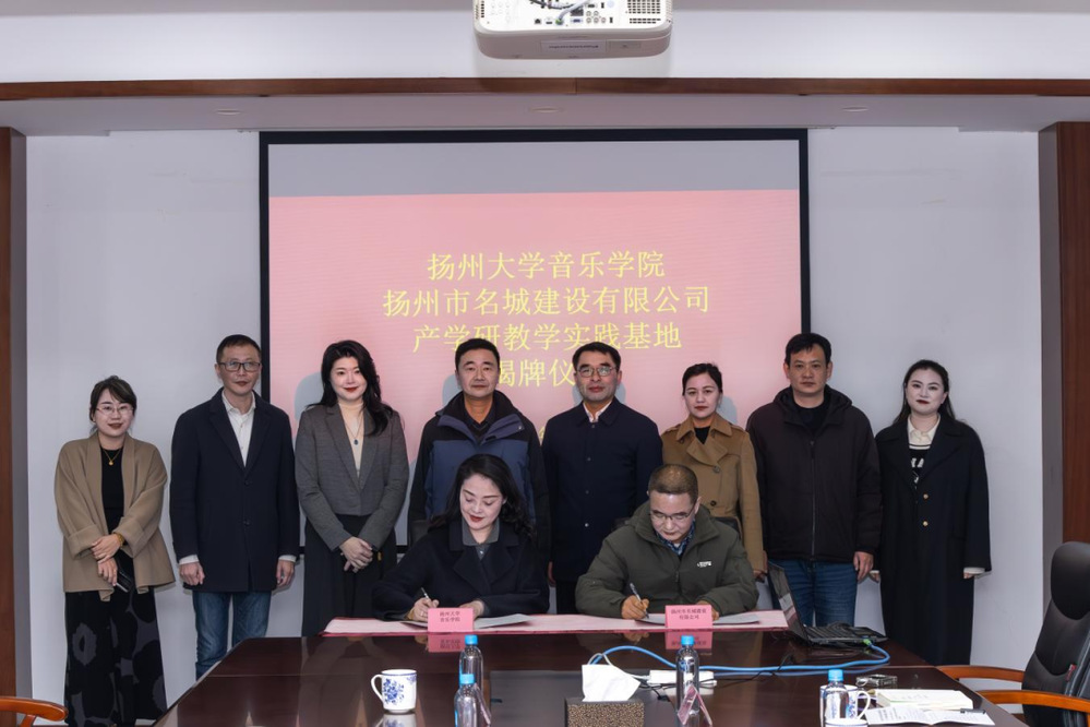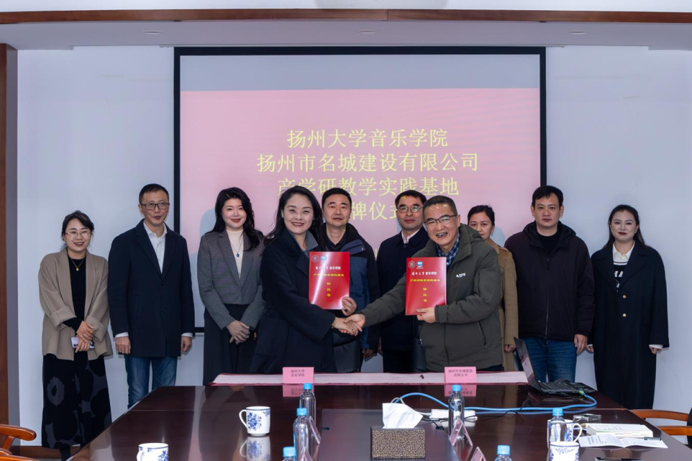 近日,揚州市名城建設(shè)有限公司與揚州大學(xué)音樂學(xué)院“產(chǎn)學(xué)研教學(xué)實踐基地” 簽約揭牌儀式在原古城保護展示館舉行。揚州市名城建設(shè)有限公司黨總支書記、總經(jīng)理戴興春,揚州大學(xué)音樂學(xué)院黨委書記陸濤、院長邵萍及相關(guān)負責(zé)人出席儀式。